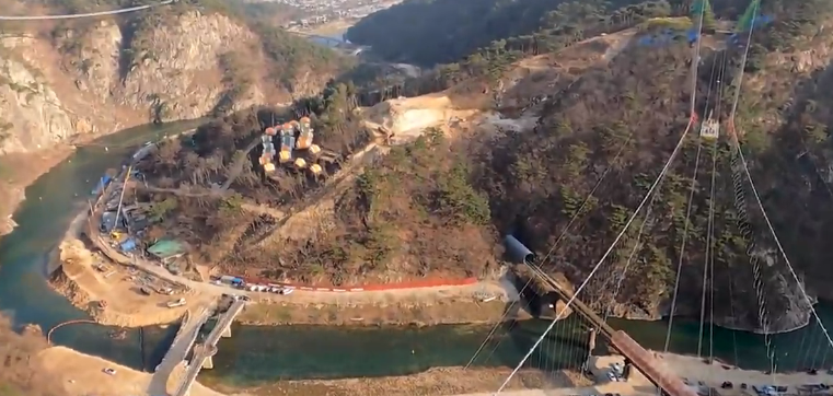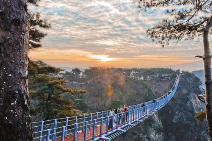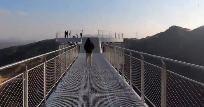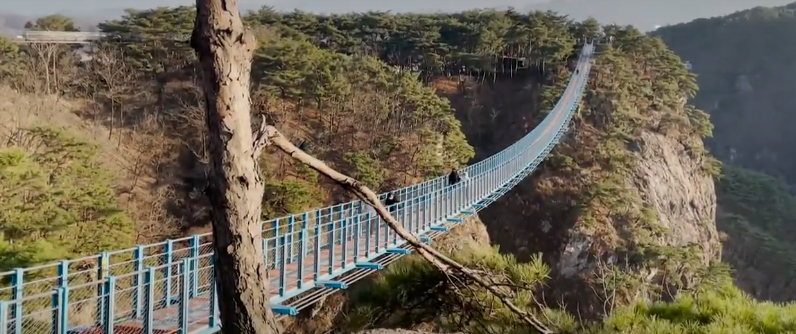 2018년 개장한 출렁다리로 200m 길이를 자랑합니다. 바닥이 격자형으로 뚫려 있는 형태로 되어있어 발아래가 훤히 들여다보여 아찔한 스릴을 제공합니다.