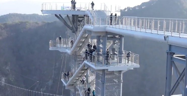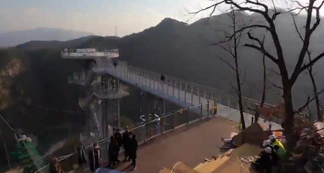 땅에서 230여 미터 높이에 지어진 다리로, 아찔한 절벽을 끼고 도는 다리입니다. 절벽에 다리를 건설하는 중국의 잔도공들이 지은 다리와 같은 형태인데, 아래 사진에서 보시는 것처럼 다리가 절벽에 매달려 있습니다. 이 소금잔도도 11월 27일 부터 개장해 있기 때문에 지금 방문하시면 즐기실 수 있습니다. 이 길의 끝에는 그랜드밸리의 하이라이트인 스카이 워크가 기다리고 있습니다. 스카이 워크는 아래에서 좀 더 자세히 알아보겠습니다.